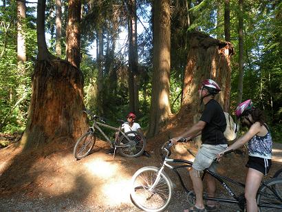 En fait, rien à voir avec la course cycliste; par contre on cherche toujours les p'tits ours en peluche (toujours les ours !) car les arbres du parc Stanley à Vancouver ressemblent étrangement à ceux de l'univers de Star Wars.