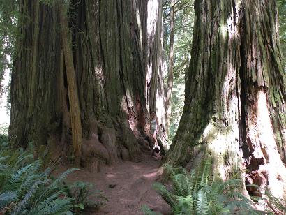 Et de part en part des forêts de géants, où l'on se sent vraiment tout petit (regardez bien la photo : Carole est coincée entre les 2 mastodontes).